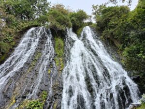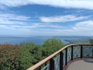 車で細い砂利道登っていき、駐車場から急な階段を登りきれいな景色を見ることができましたが、謎の小さな赤い虫が大量発生していました